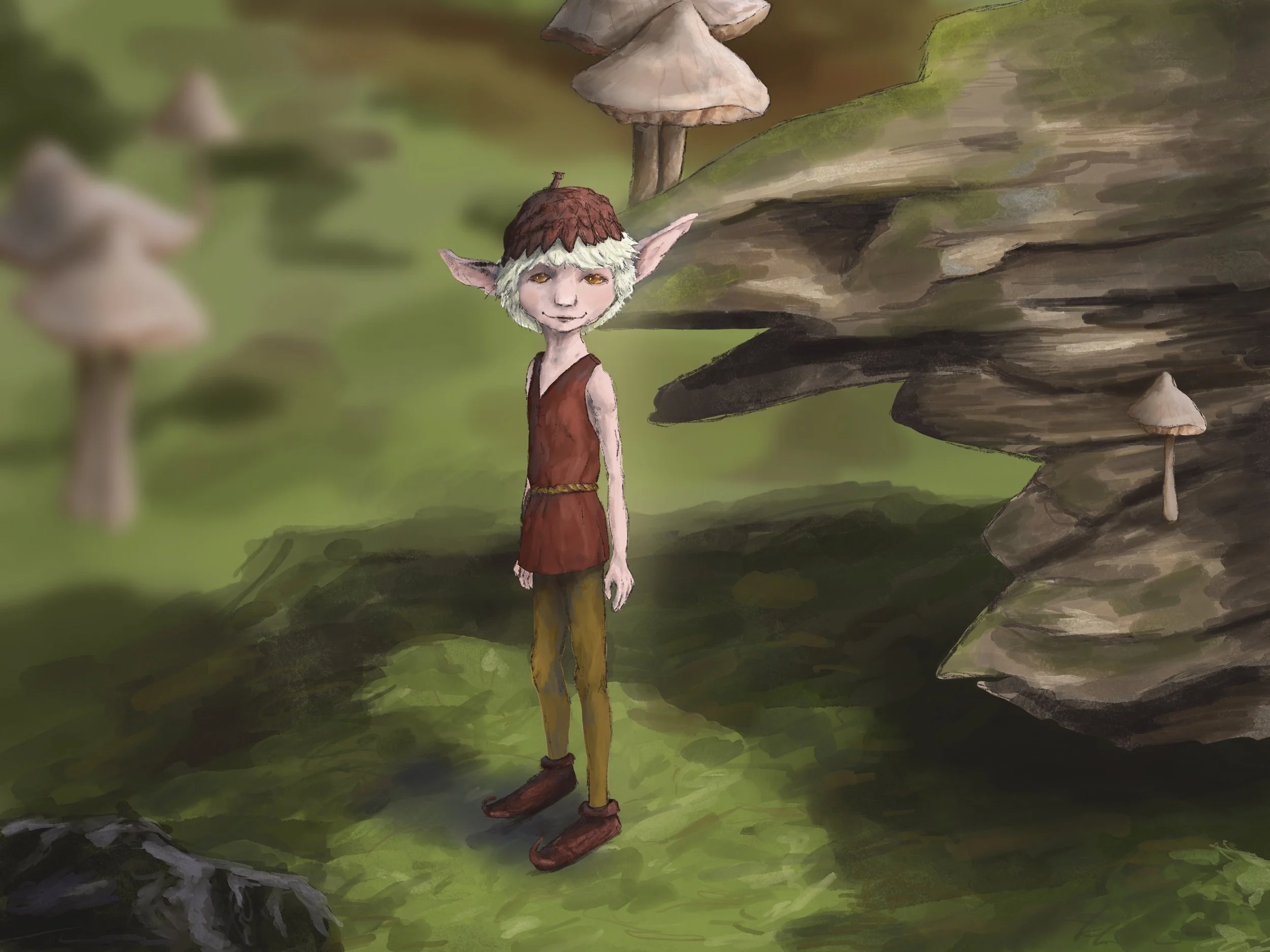 The question “How does music make you feel,” was the inspiration for this piece. For me, music can make me feel a divide between my current reality and one that is fantastical. The woods don't seem to be anything out of the ordinary and the girl looks casual and relaxed. Only after a moment do you realize she has antlers and headphones and that maybe there is something more here.